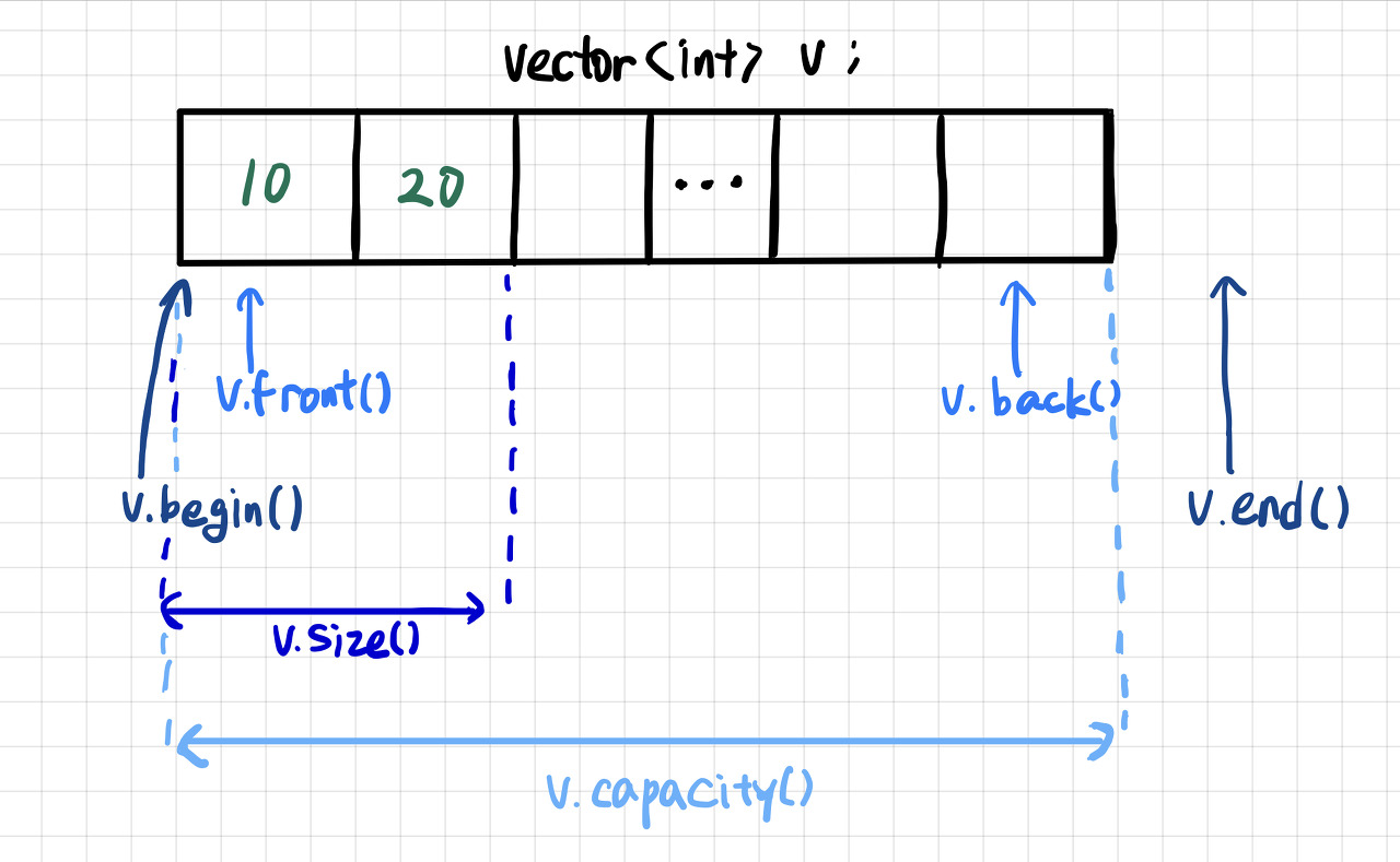 vector는 배열과 마찬가지로 저장된 요소가 연속된 메모리 주소를 갖는 선형 배열이다.