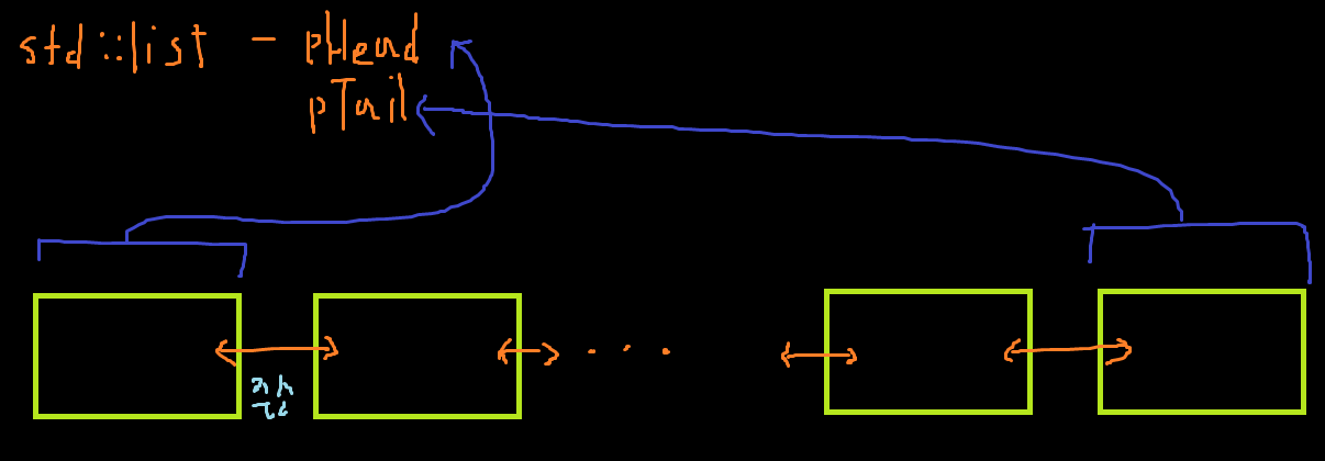 list는 노드 기반 컨테이너이고, C++에서는 이중 연결 리스트와 매우 유사하다.